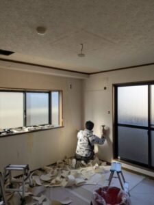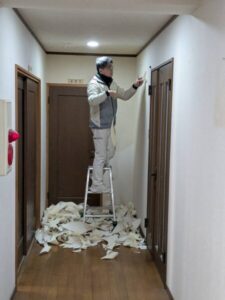 既存のクロスを丁寧に剥がし、下地の状態を確認・調整したうえで新しいクロスを施工。